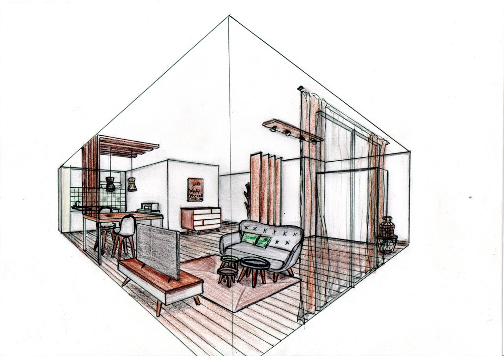 Ce studio est destiné à la location meublée et le public visé est une personne seule ou un couple. La décoration de ce lieu doit être simple, neutre et tendance afin de susciter l’envie d’y vivre au plus grand nombre..