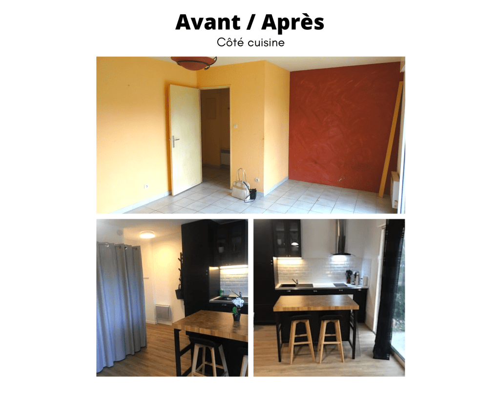 Pour Maxime et Aurélie, les travaux c’est une histoire de famille! J’ai composé tout le projet mais je n’ai pas suivi les travaux de ce chantier car Maxime, Aurélie et leur famille, les ont réalisés eux même. Le studio a été loué très vite après les travaux, je n’ai donc pas encore eu la chance de voir le chantier terminé. Lors de notre dernière rencontre, Maxime m’a remis les photos du studio. L’émotion m’a envahit lorsque j’ai constaté que le projet que j’avais imaginé avait prit forme. C’est une belle récompense pour Label Harmonie, alors je remercie chaleureusement Aurélie et Maxime de la confiance qu’ils m’ont accordée mais aussi pour avoir respectés le projet jusque dans les moindres détails.
