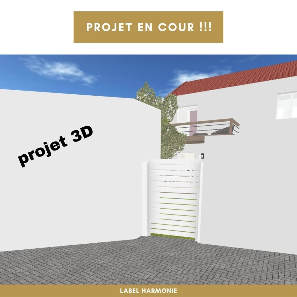 En remplaçant le double portail qui ne sert pas, par un portail simple plus petit, on gagne du linéaire pour la création du bassin. On réhausse le mur, on opte pour un portail plein, et on cache le vis à vis !