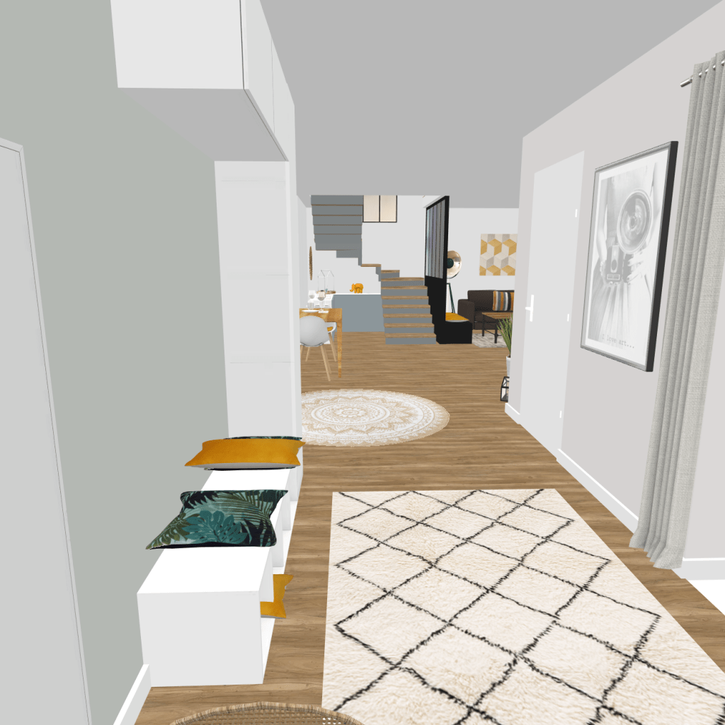 Mes clients sont les heureux parents de deux enfants en bas âges, le nouvel aménagement doit être pratique et convivial. Pour cela j’envisage beaucoup de rangements astucieux qui permettront de stocker les jouets, les chaussures et les nombreux sacs à main de Fanny ! Vivre dans un foyer rangé et organisé est indispensable pour cette joyeuse famille ou désormais chaque chose aura sa place, le top quoi !!!