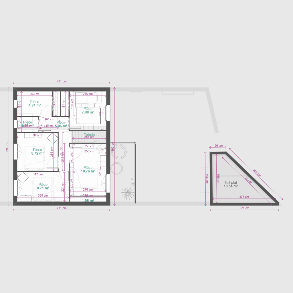 A l’étage, la suite parentale possède une porte fenêtre qui donne sur un garde corp. Quel dommage de ne pas pouvoir profiter d’une terrasse ! Alors pourquoi s’en priver ? De plus cela permet de couvrir la terrasse de dessous, idéal pour déjeuner à l’ombre… Et troisième fonction pour cette terrasse suspendue, elle permet également de retirer la marquise très datée. Elle servira donc aussi d’abris pour la porte d’entrée, permettra de se tenir au sec par temps de pluie !